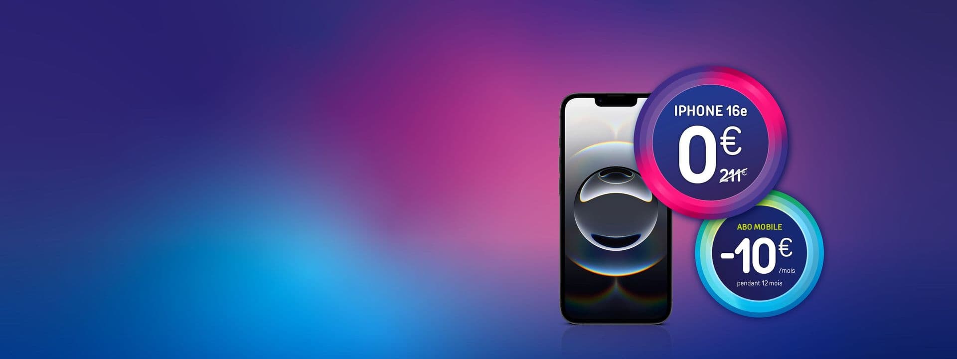 Offre promotionnelle valable pour toute souscription à GO)) mobile L+ & MNM M sur 24 mois et à l’achat d’un iPhone 16e 128GB: une remise de 10€ par mois sera appliquée pendant les 12 premiers mois.